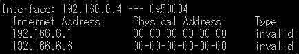 arp -aでテーブルを見るとTypeが全てinvalidになっている(!)