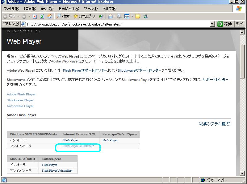 [Flash Player Uninstaller*]をクリックしてアンインストーラーをDL。