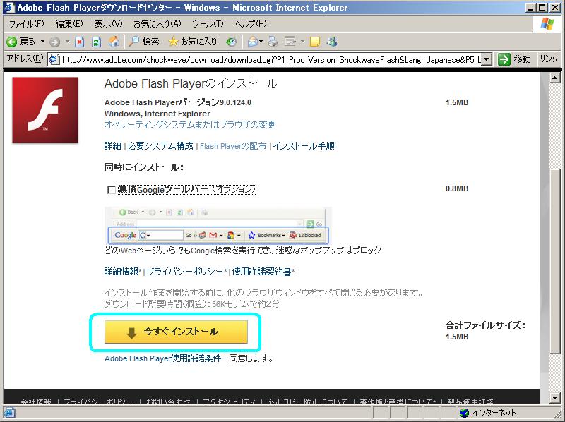 [無償Googleツールバー (オプション)]のチェックをなんとなく外す。