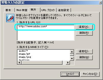[追加(A)]ボタンを押し,[1.除外するURL(U):]リスト内に出た候補を編集して,